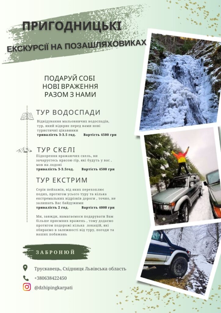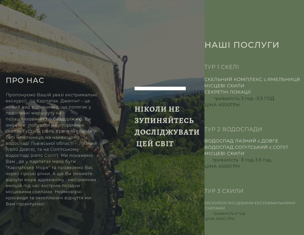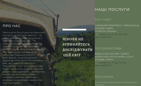 Обирайте пізнавальні, яскраві екскурсії та захопливі поїздки на джипах і ваші мандри Карпатами стануть справді незабутніми.